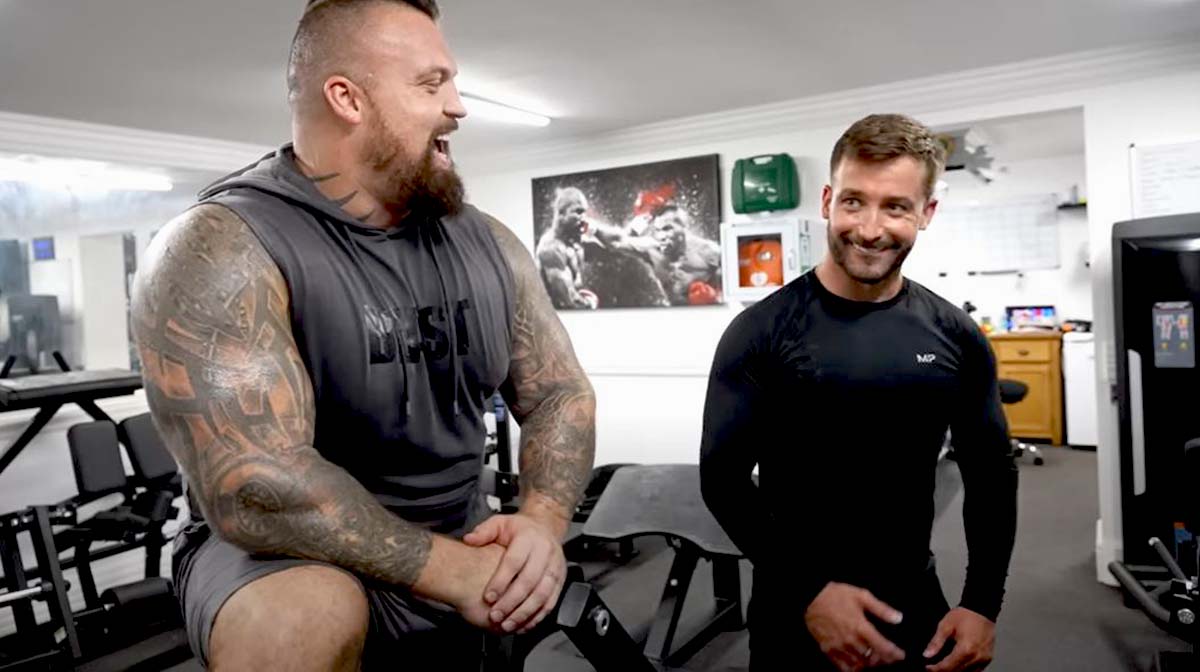 Eddie Hall is terug in de sportschool. Meestal traint hij met zijn zoon Max, maar deze keer heeft hij een nieuwe partner: Joe Bird, die je misschien beter kent als