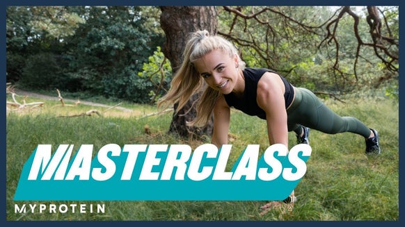 - Begin met je lichaam in een plankpositie en plaats de handen direct in lijn met de schouders.