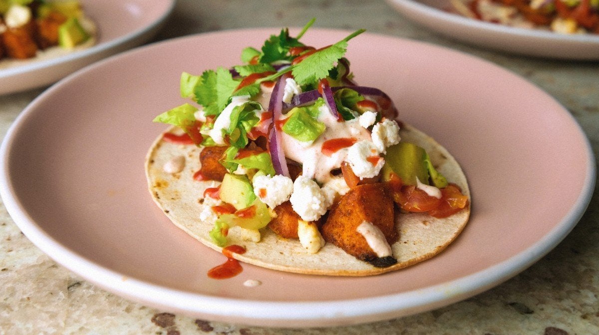 Niall Kirkland heeft weer een geweldig idee in de keuken tot leven gebracht. Geladen met gebakken zoete aardappel, afgebrokkelde feta, pittige salsa, chili-limoen-zure room, knapperige geraspte sla en veel hete saus - zijn deze softshell-taco's een smaakexplosie waar je geen genoeg van kunt krijgen.