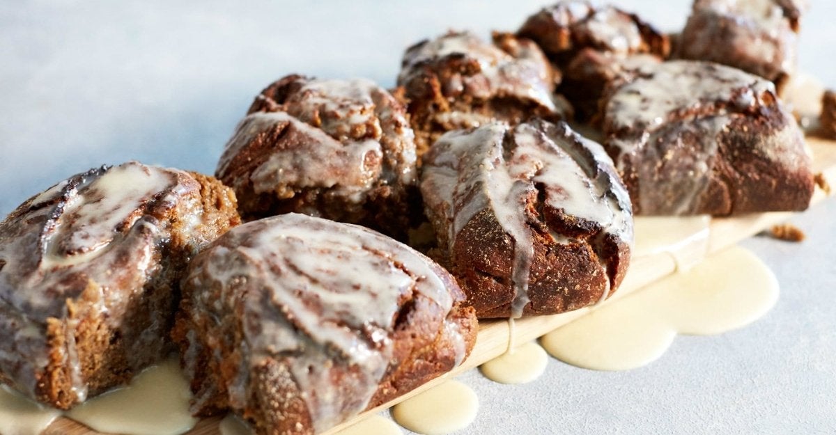 Deze gigantische zuivelvrije kaneelbroodjes zijn precies wat je nodig hebt voor een heerlijke traktatie die in je dieet past. Ze zijn vrij van geraffineerde suikers, bevatten veel eiwitten en zijn volledig zuivelvrij en veganistisch. Wat wil je nog meer?