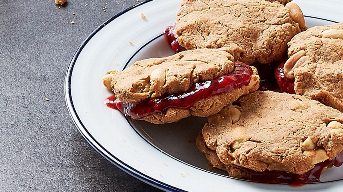 We wisten dat het een no-brainer was voor een eiwitshake-smaak, maar met dit ongelooflijke recept gaan we nog een stap verder op de schaal van klassieke Amerikaanse lekkernijen. Deze eiwitrijke peanut butter sandwich cookies kunnen in minder dan 15 minuten worden gemaakt - en wat is een betere vulling voor ze dan wat zelfgemaakte "jam"?