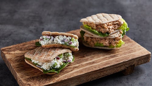 3. Rooster intussen je flatbread en besmeer royaal met hummus. Voeg wat rucola, gehakte cherrytomaatjes en tot slot de gekookte, krokante halloumischijfjes toe. Geniet!