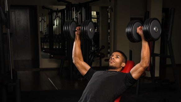 Meng in een kom de Instant Oats, Vanilla Impact Whey Protein en bakpoeder samen.