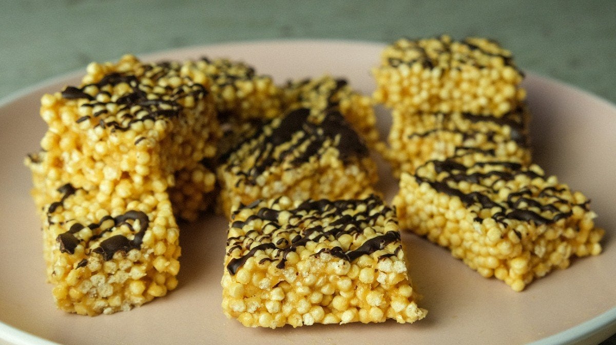 - Combineer vervolgens in een grote kom de Protein Crispies met de maple syrup mix.