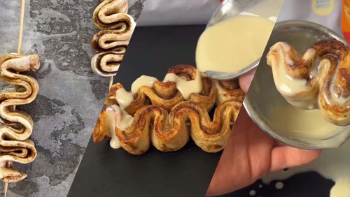 Snijd vervolgens de Speculoos Layered Bar in kleine stukjes. Voeg de helft toe aan je cheesecake-mengsel en bewaar de rest voor later.