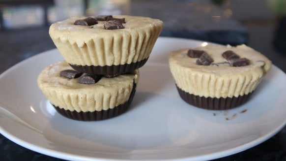 - Verhit een beetje caloriearme kookspray in een pan op middelhoog vuur. Als het warm is, giet je een beetje van het pannenkoekenbeslag in de pan en bak je een paar minuten aan elke kant. Haal uit de pan en herhaal met de rest van het beslag tot alles op is.