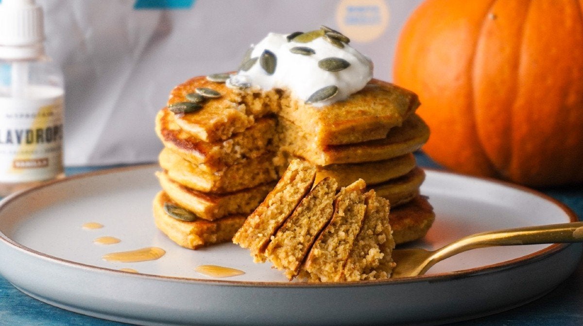 Deze pompoen-eiwitpannenkoekjes zijn de perfecte keuze voor een herfstbrunch.