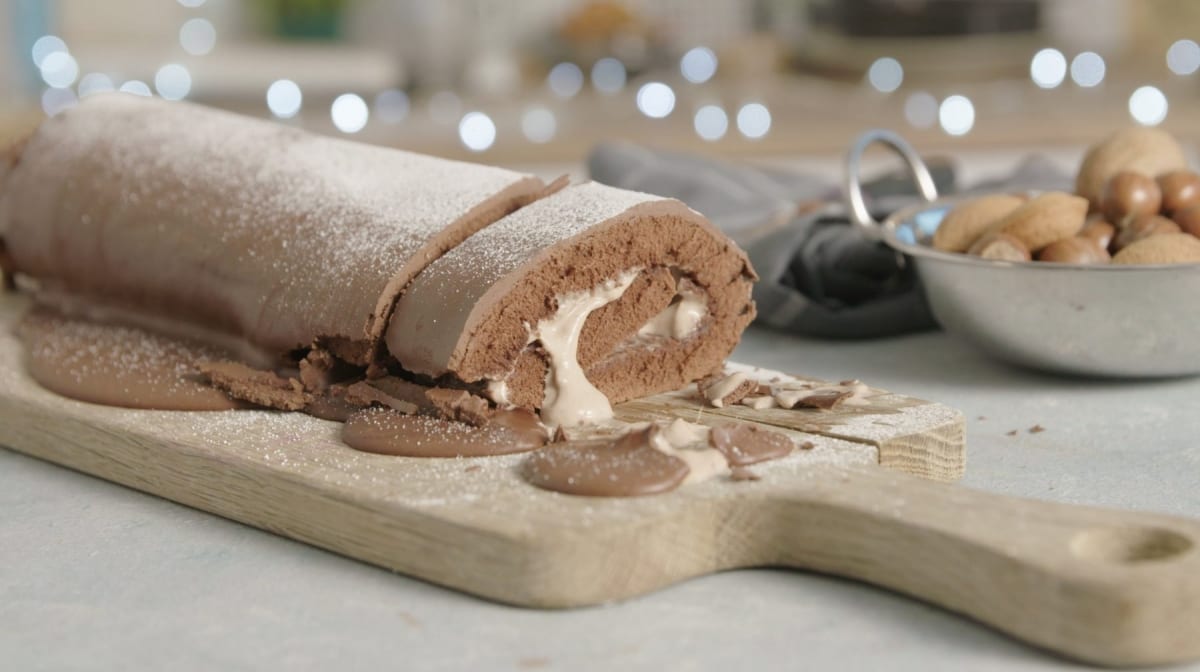 8. Rol voorzichtig met de spons om je yule log te maken.