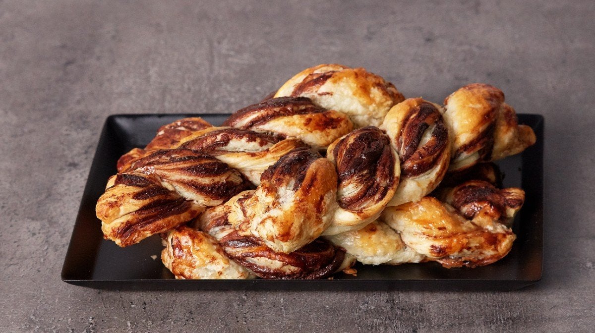 - Herhaal dit voor de andere 3 stukken deeg en plaats alle twists op een bakplaat bekleed met bakpapier.