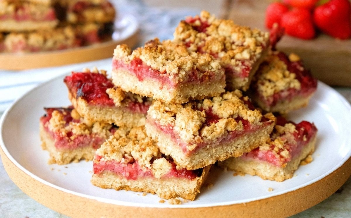 Onweerstaanbaar kleverig en zoet, deze fruitige kruimelrepen zijn de perfecte snack..