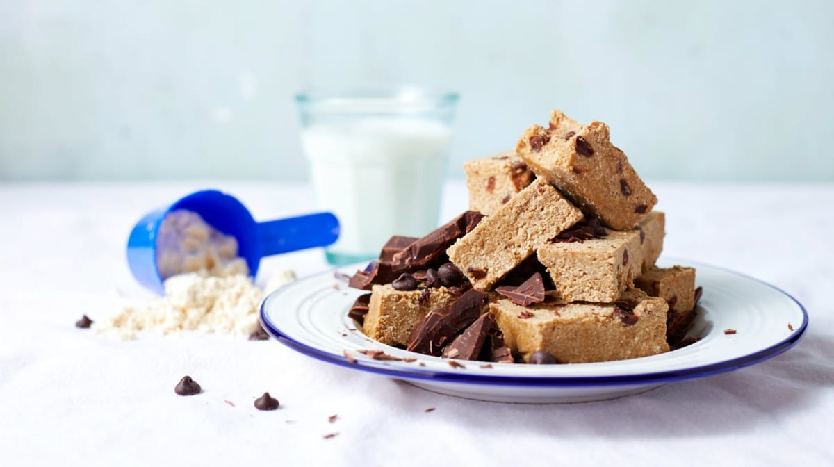 Mix eerst de havermout tot je een poeder krijgt (je kunt deze stap overslaan als je Instant Oats gebruikt). Voeg het eiwitpoeder en de melk* toe aan de blender en pulseer om te combineren, giet dan de gesmolten kokosolie erbij en mix tot er een deeg ontstaat. Voeg de chocoladestukjes toe en pulseer kort door tot ze goed verdeeld zijn.