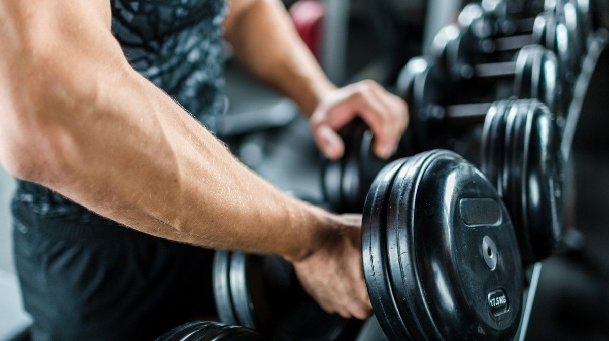 - Houd de dumbbells vast met je handpalmen naar je lichaam gericht