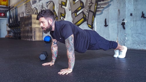 1. Spring in een hoge plankpositie en laat dan je borst op de grond zakken.