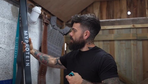 - Reik omhoog om de stang vast te pakken en zorg ervoor dat je handen iets breder zijn dan schouderbreedte uit elkaar