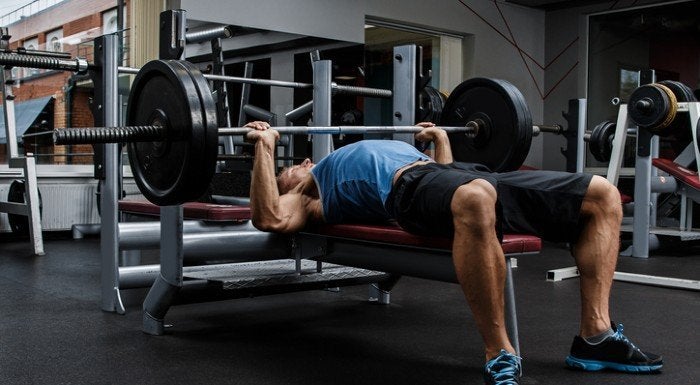 Als je toegang hebt tot een bank en een barbell met platen, dan ben je klaar voor deze oefening. Plant je voeten in de grond, met je billen, bovenrug en hoofd stevig op de bank. Maak de lading los, met je ogen onder de barbell om te starten (als een familielid of huisgenoot je kan bijstaan, dan is dat geweldig - veiligheid eerst!).