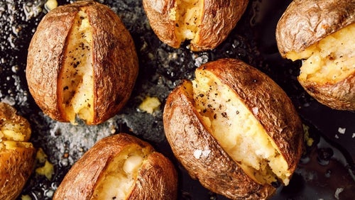 Koolhydratenbron (aardappelen, rijst, zoete aardappelen): aardappelen en zoete aardappelen zijn complexe koolhydraten; bruine rijst is de beste keuze als volkoren voor complexe, langzaam verteerbare koolhydraten voor duurzame energie.